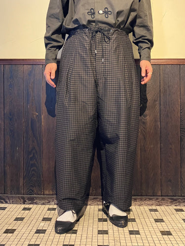 462524 コットンシルクギンガムチェック ワイドイージーパンツ
