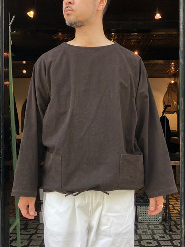 422525 泥染風コットンフランネル クルーネックラグランシャツ