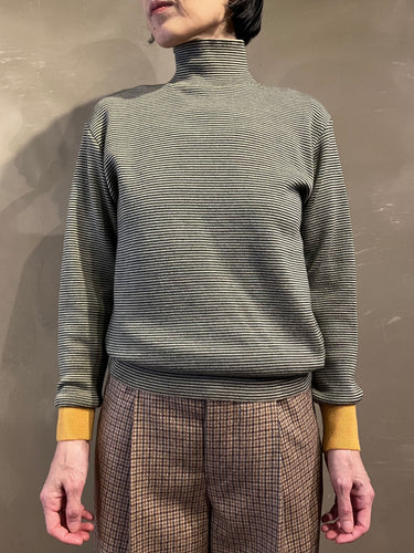 Women 412502 14Gウールスムース ボーダーハイネックセーター