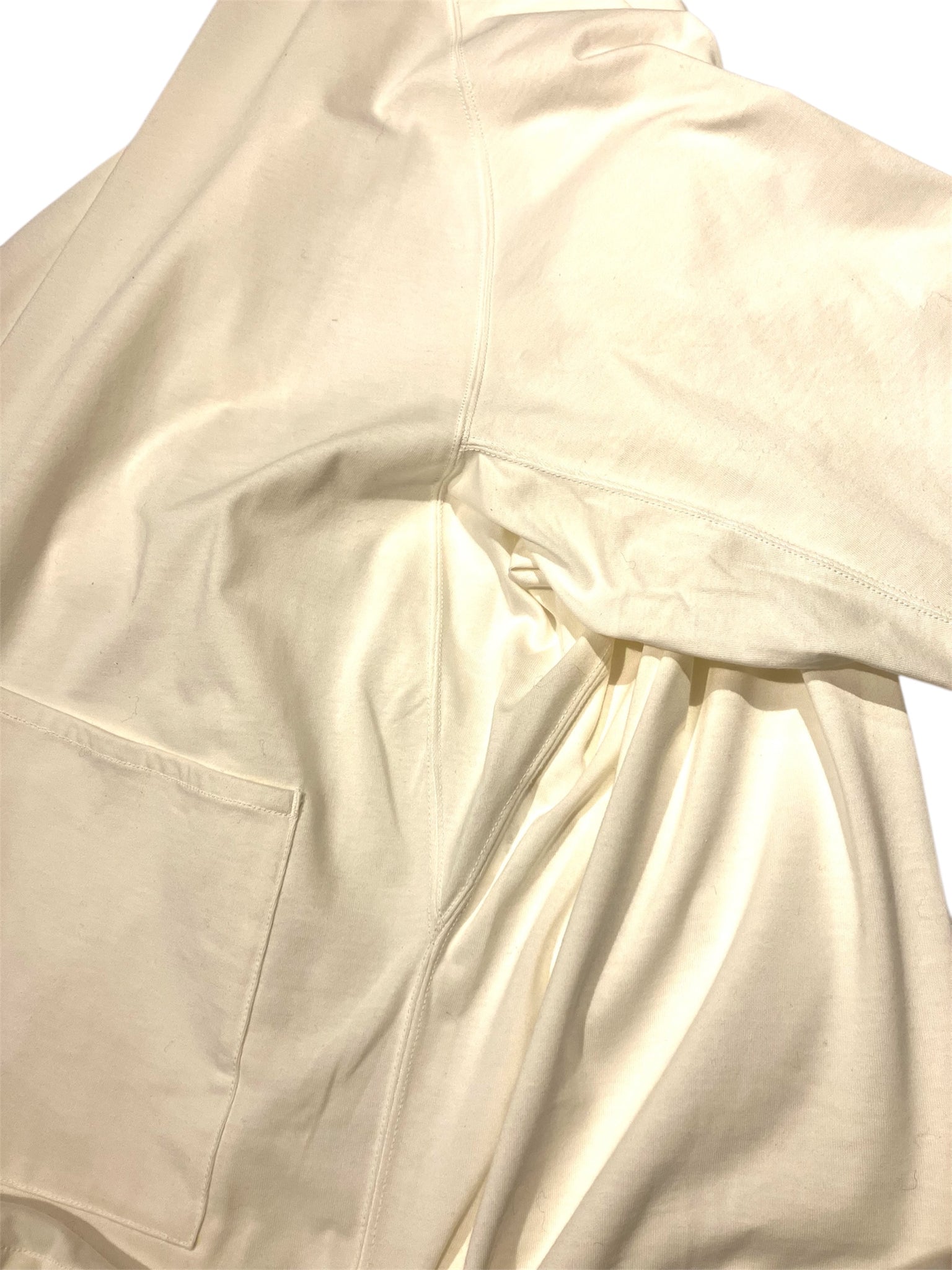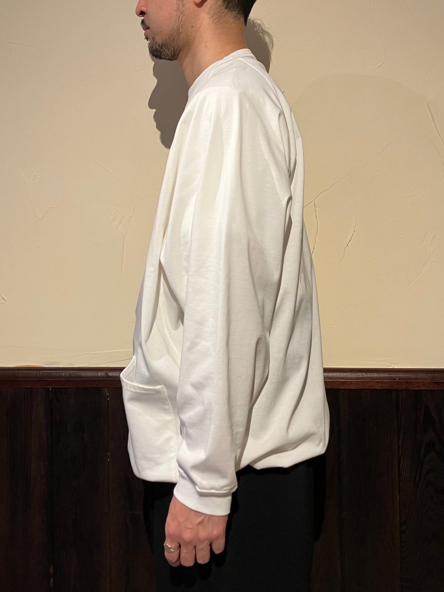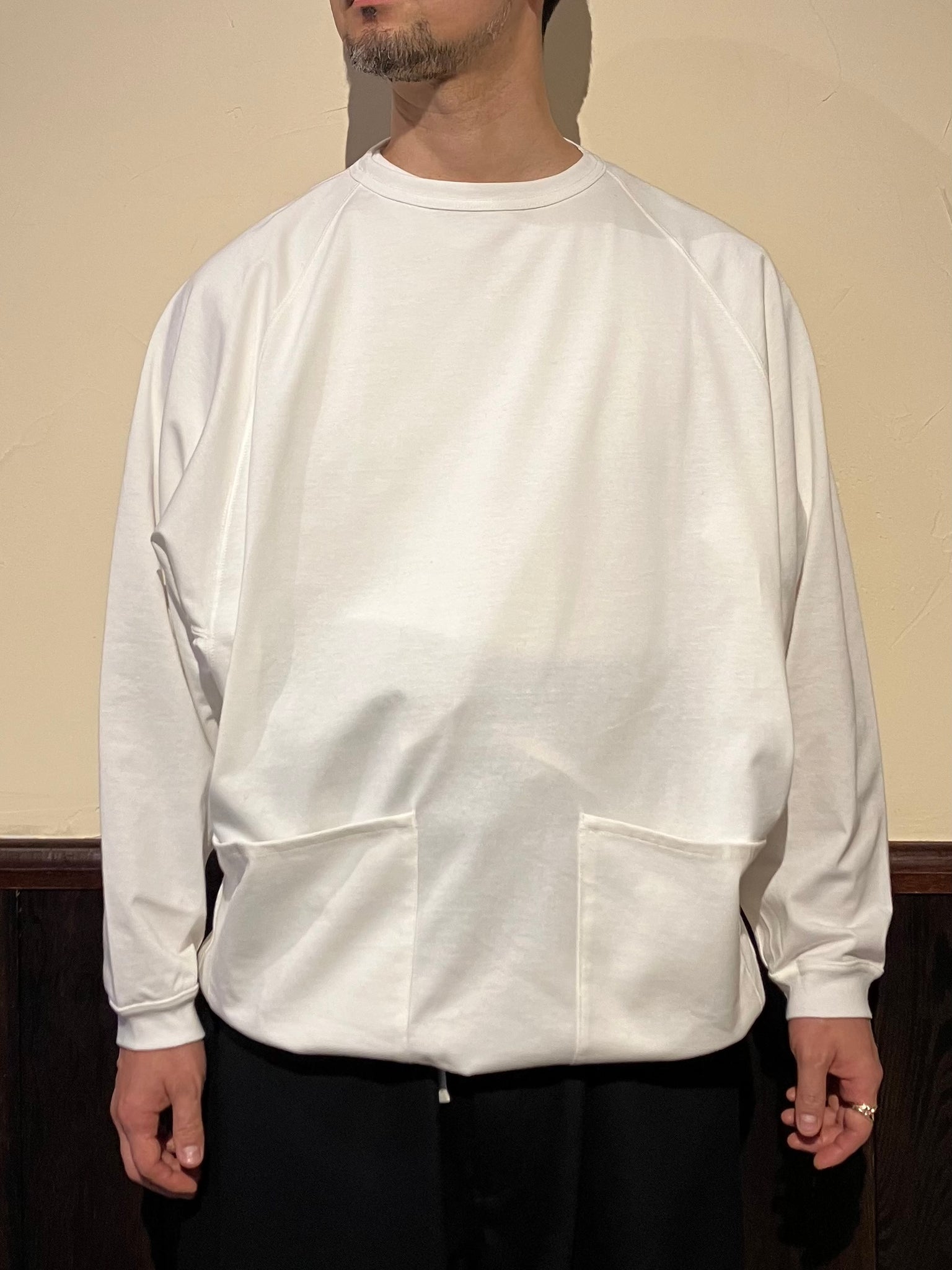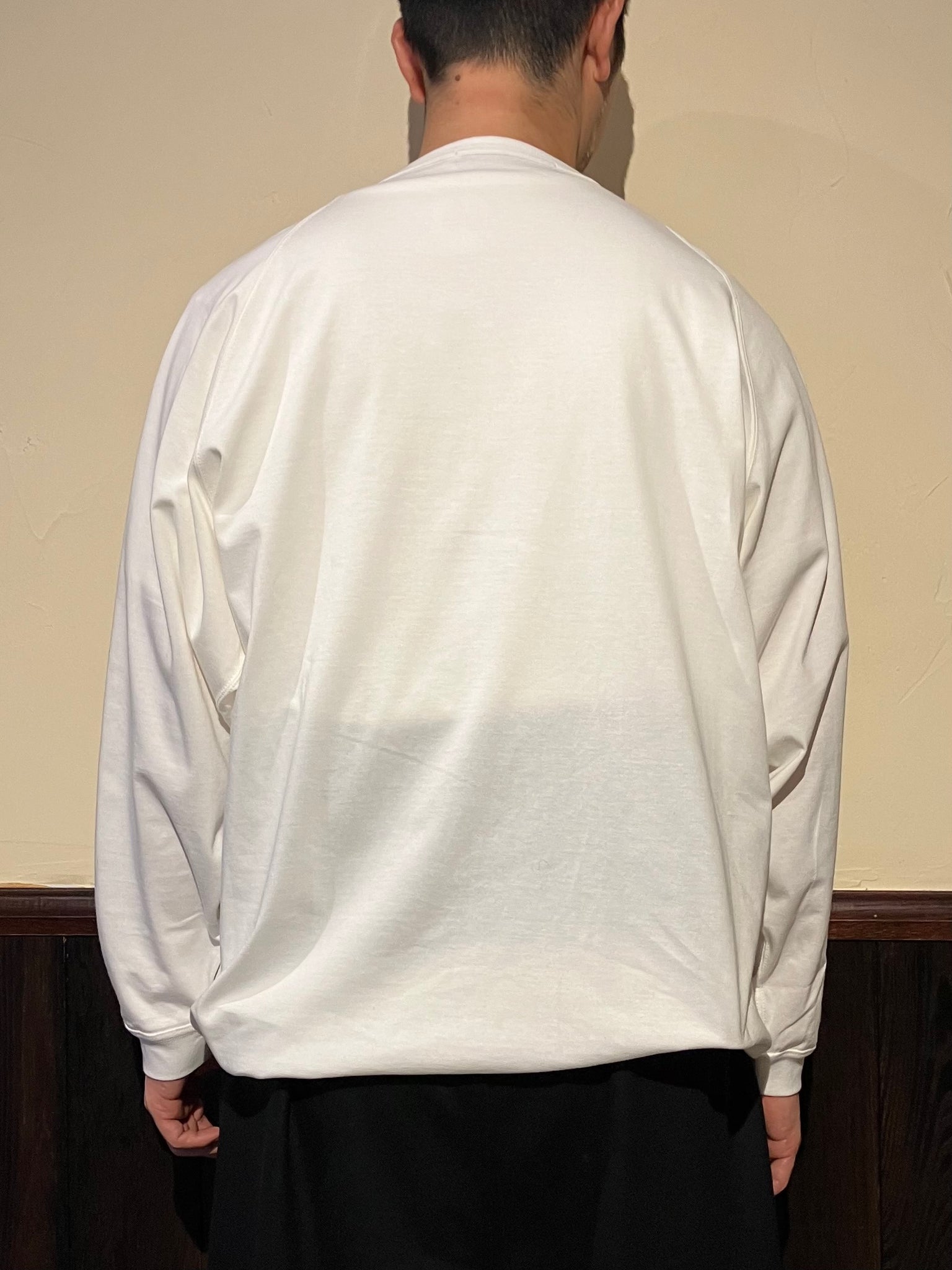 ラグランスリーブの袖下の大きなマチが特徴のルーズフィットクルーネックTシャツ。身頃が引っ張られず、腕の可動を妨げることのないパターンに仕上げています。前身頃にはパッチポケットをつけ機能面も考慮した作りになっています。