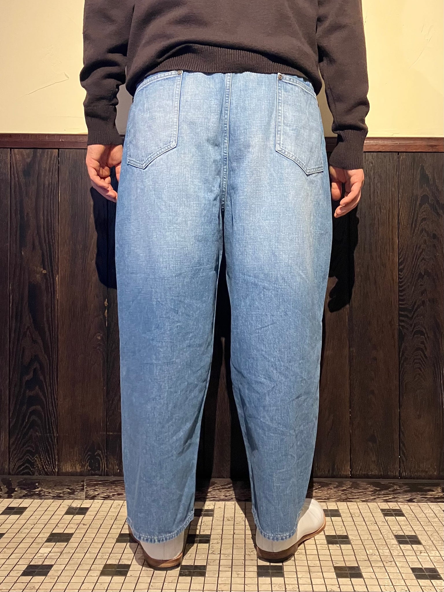 1(S)sizeウエスト(Waist)ー94cmヒップ(Hip)ー124cm股上(Rise)-39.5cm股下(InSeamLength)ー56cmワタリ(Wading)ー40.3cm裾幅(SheeveWidth)ー25.5cm