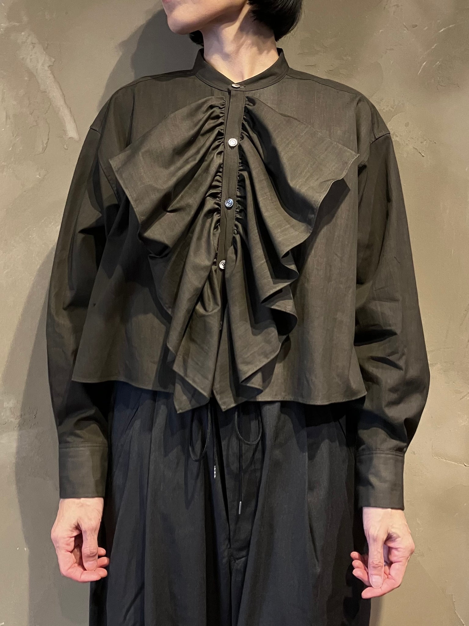 Women 322526 墨染ブロード バンドカラー フリルシャツ