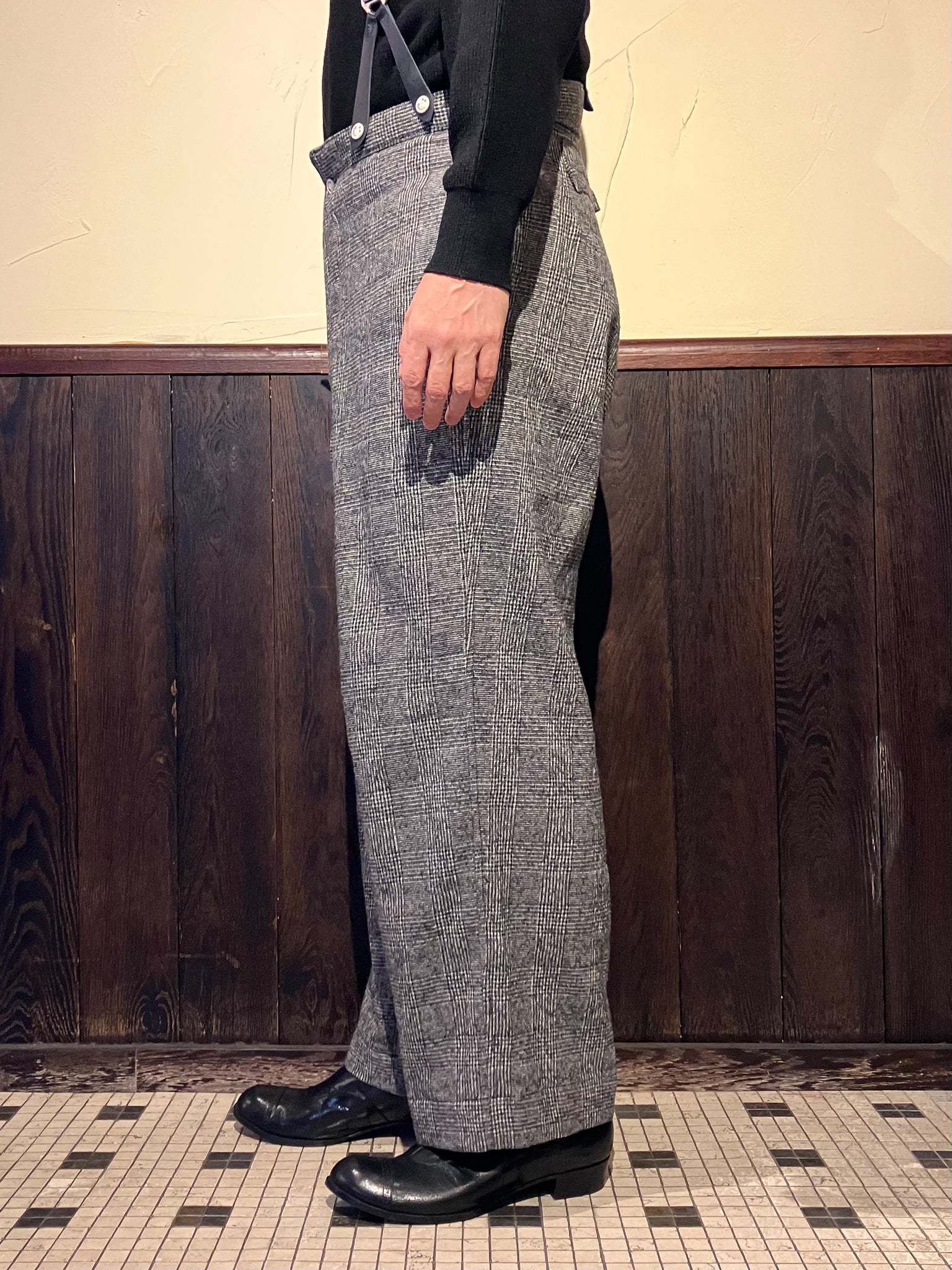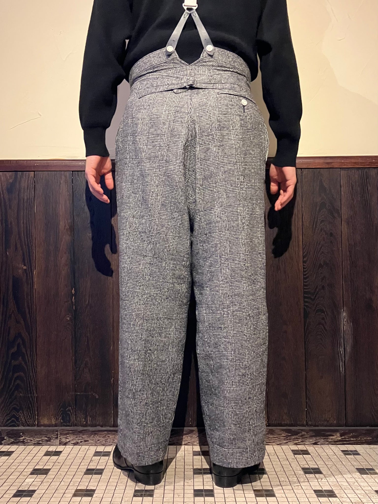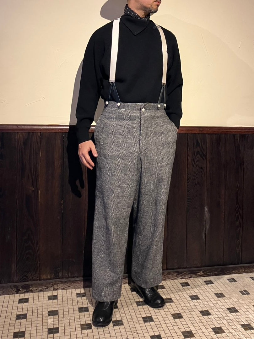 HSP-005 直営店別注 グレンチェック ハイバックサスペンダーワイドパンツ